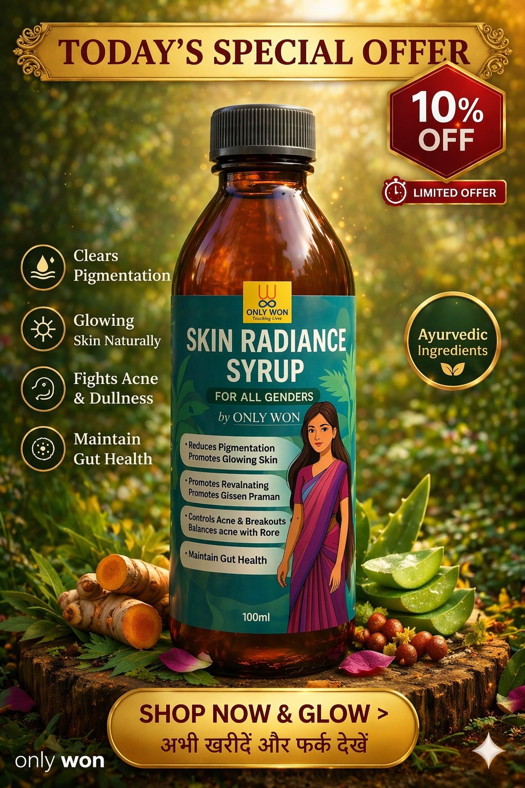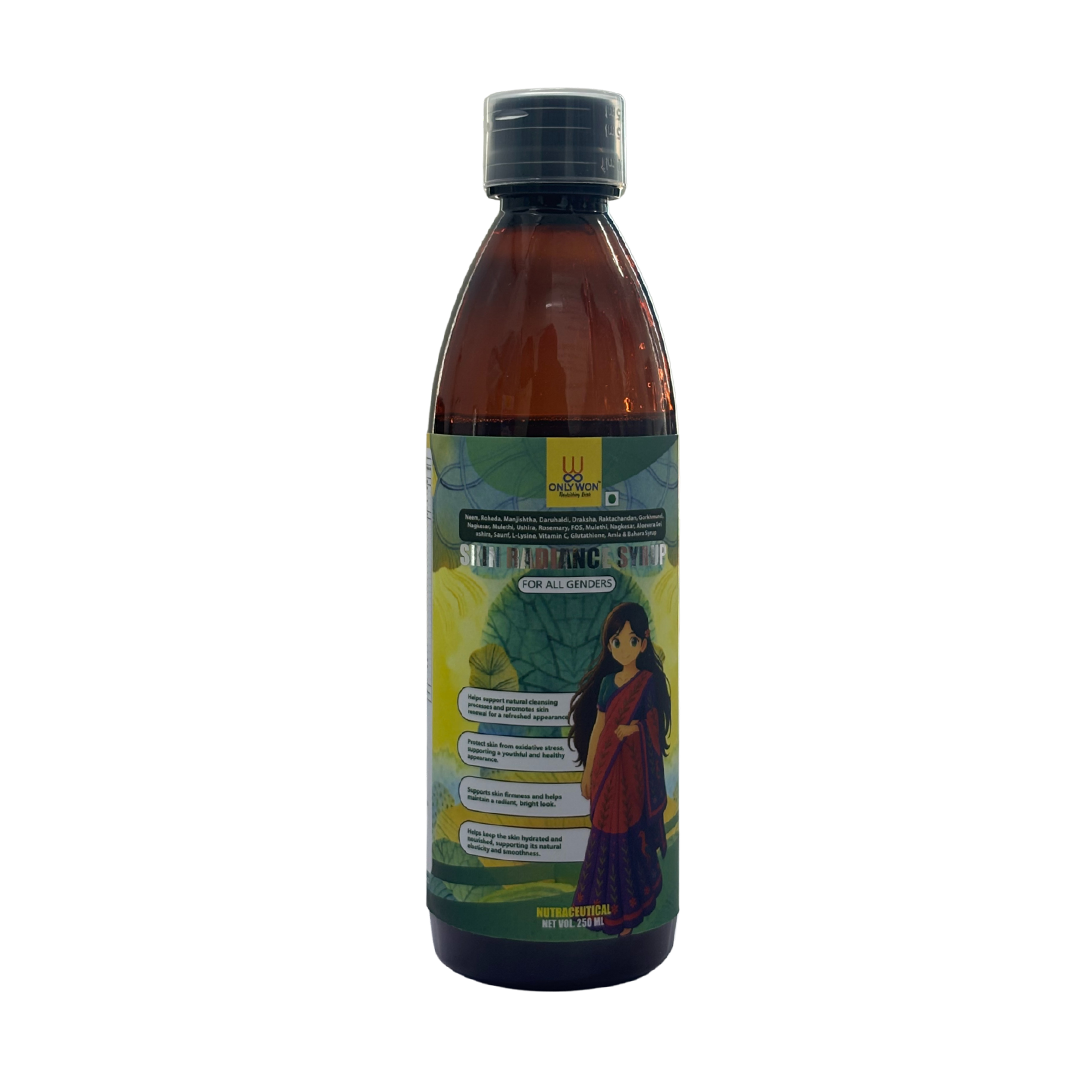Skin Radiance Syrup is a thoughtfully prepared blend of traditional Ayurvedic herbs crafted to complement your daily beauty routine.